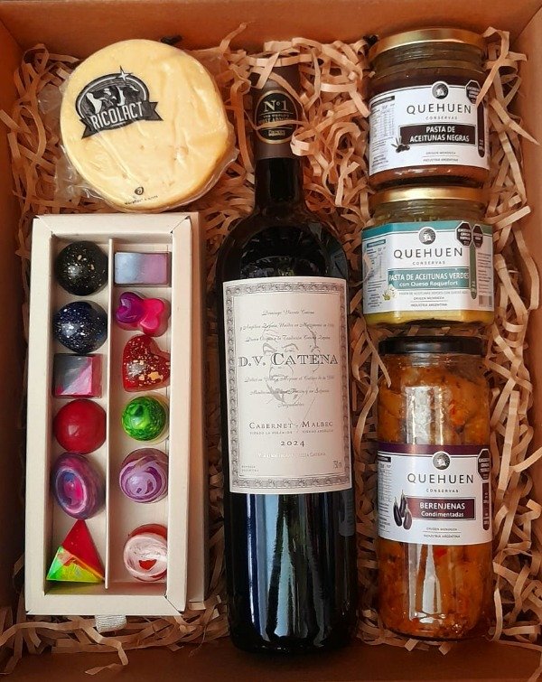 Además del vino, la box incluye una selección de bombones y una picada cuidadosamente elegida, que complementa a la perfección la experiencia de degustación. Es una combinación que resalta los mejores aspectos de la gastronomía argentina, proporcionando un deleite para el paladar. Este es el regalo ideal para quienes buscan no solo dar un presente, sino crear recuerdos inolvidables.