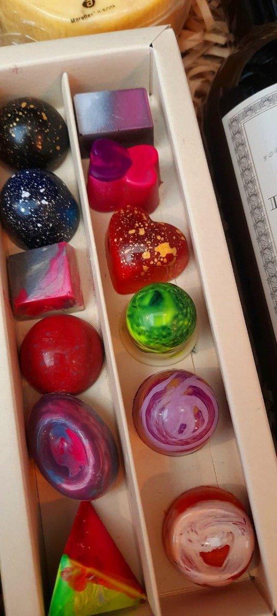 Acompañando al vino, se presenta una exquisita selección de bombones y picada, pensada para complementar a la perfección la experiencia de degustación. La combinación de sabores dulces y salados hará que cada sorbo y bocado se conviertan en un placer para los sentidos. Esta box es más que una simple presentación; es una celebración de los lazos y de los instantes compartidos.