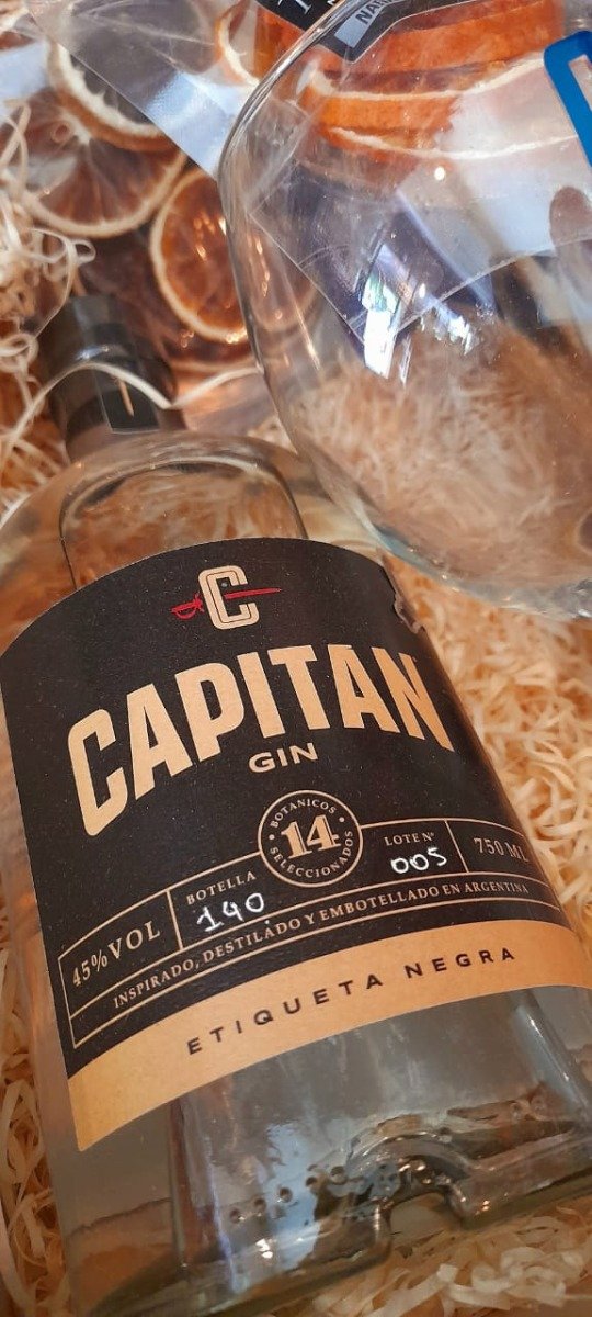 El diseño de la botella es sofisticado, lo que la convierte en un excelente elemento decorativo para cualquier bar o evento. Ya sea que lo disfrutes solo, con tónica o en un cóctel, el Gin Capitán London Dry promete una experiencia de sabor inigualable.